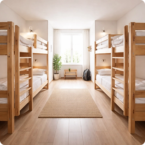 Nuestro albergue nace de la idea de crear un santuario urbano donde la sostenibilidad y la comodidad se encuentran.